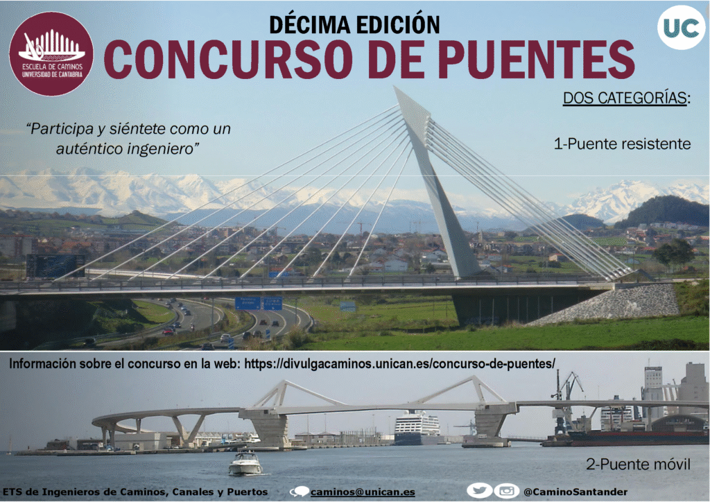 Este concurso está dirigido a alumnos/as de Educación Secundaria y de Bachillerato de Cantabria, siendo su objetivo principal la construcción de un puente a escala reducida de la forma más eficiente posible, empleando para ello distintos materiales.