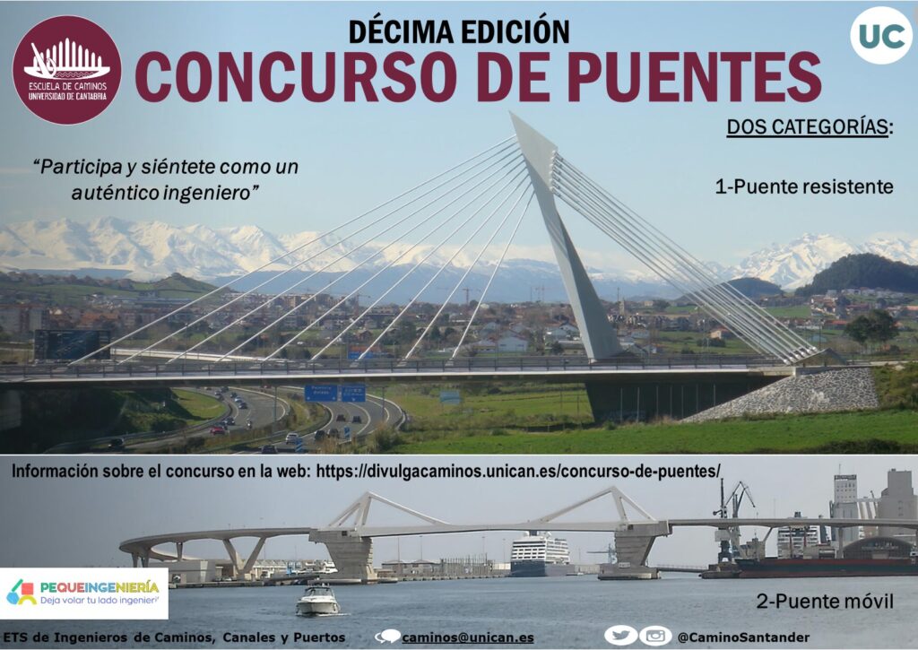 Este concurso está dirigido a alumnos/as de Educación Secundaria y Bachillerato de Cantabria, siendo su objetivo principal la construcción de un puente a escala de la forma mas eficiente posible empleando para ello distintos materiales.